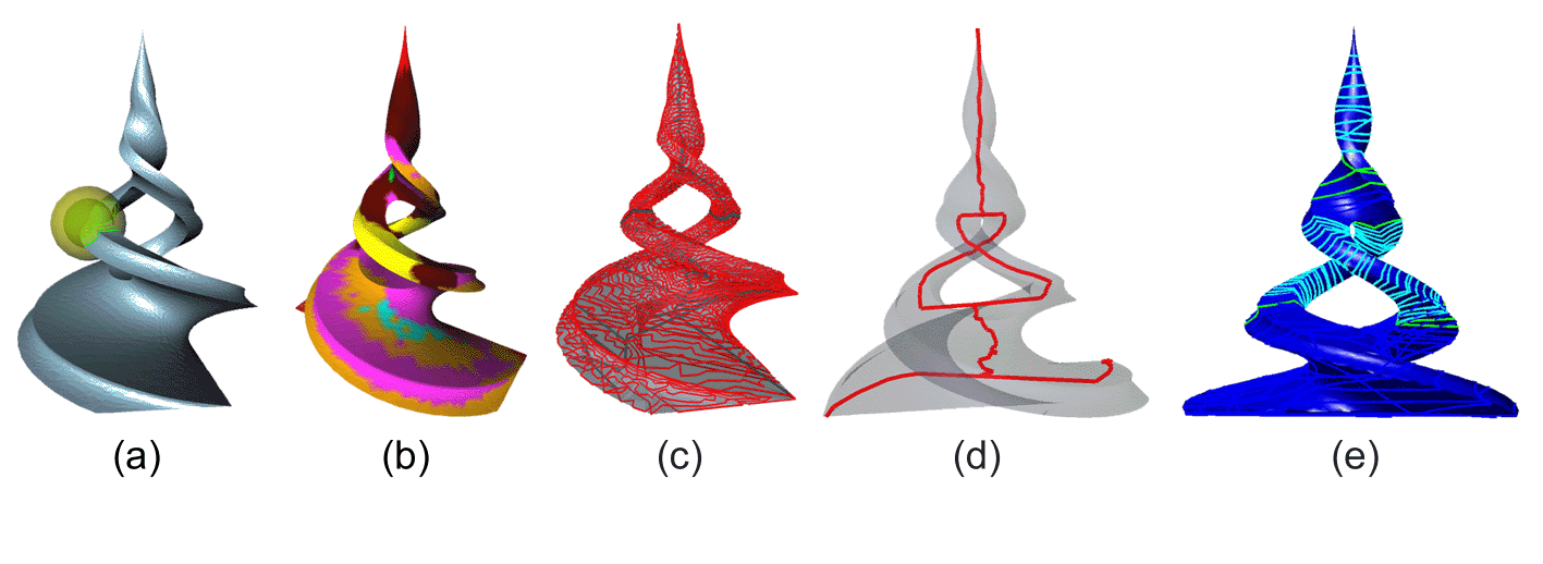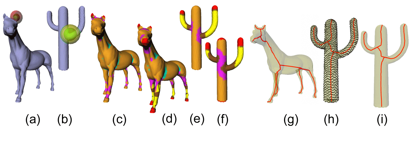 Besides these geometric simplification techniques, widely used in computer graphics, also computational topology offers interesting hints to shape description. Actually, extraction of topological structures, e.g. critical point configurations or contour line evolution along prevalent directions, constitutes a powerful technique for shape abstraction.