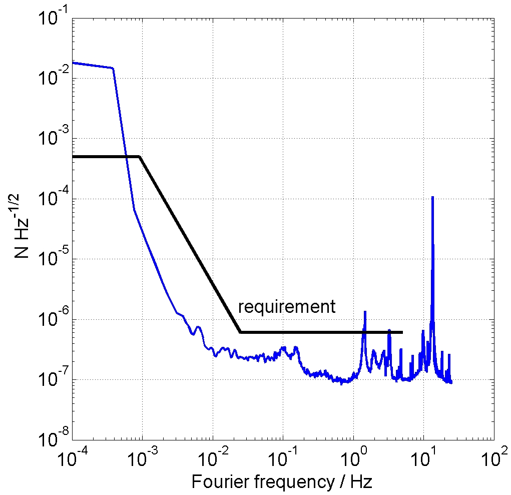 Preliminary measurements showed that a sensitivity better that 1 mN is achieved, limited by seismic noise.