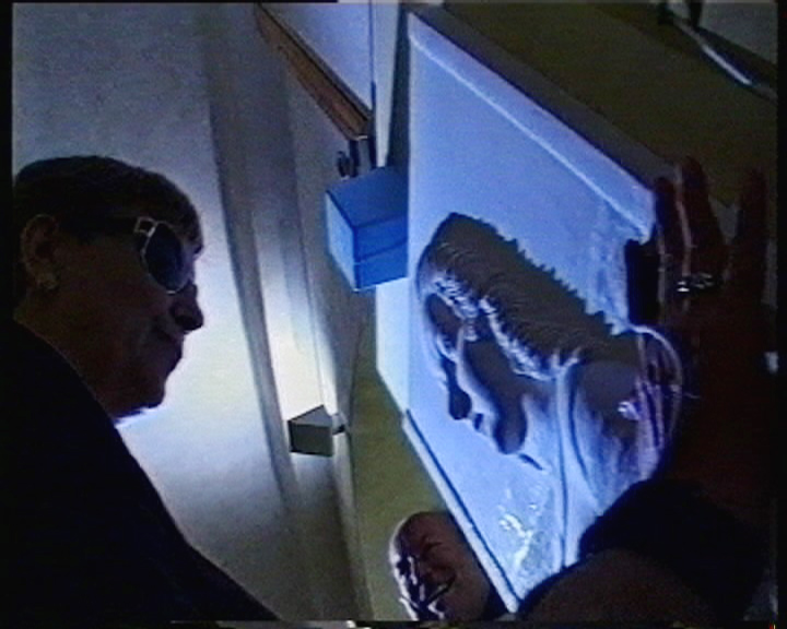 The blind person would touch the model and have a tactile experience of the form. At the same time it would perceive a musical sound constituting the equivalent of the color carried by the form in the point of touch. In this way, form perception and color perception would be reunited and synchronous as it happens in vision for seeing people.