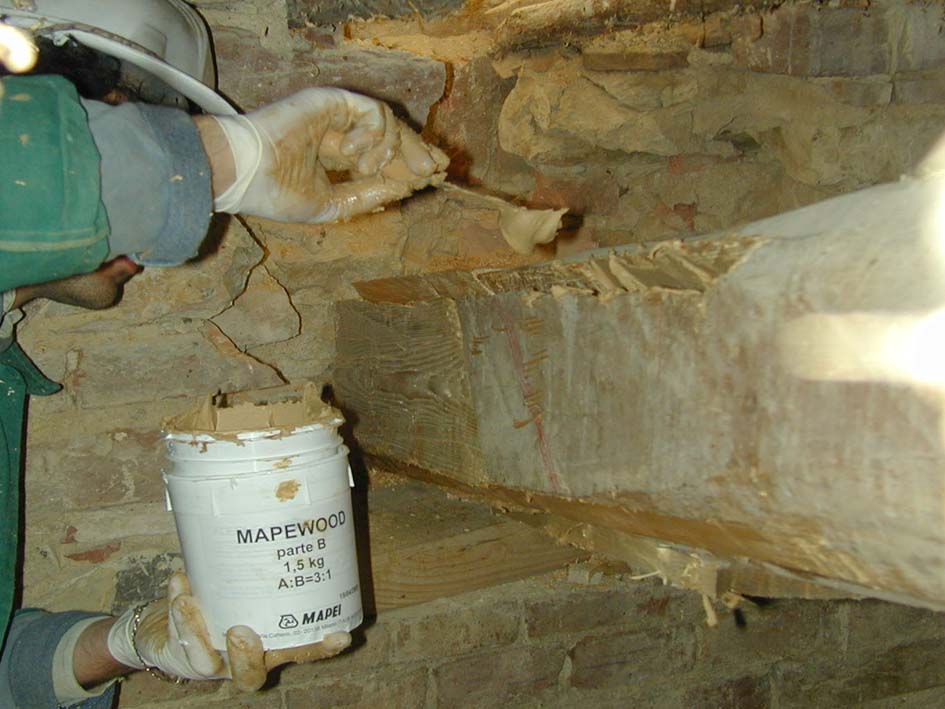 The Italian building culture is based on bricks and stones for the walls, but until the first half of the 20th century almost all the floorings and the roof structures were made of timber, often richly decorated with paints or bas-reliefs. In general, the conservation authorities recommend that these structures should be maintained as integrally as possible, even when structural upgrading is needed, and in effect the interventions with glued-in rods or other analogous techniques is an interesting alternative to the replacement of whole timber elements. Adding reinforcing materials to the existing timber is therefore a quick, cheap and well established practice, but two important issues need to be further developed: the compatibility between the involved materials and the reversibility of the intervention.