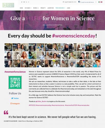 L’iniziativa “Give a selfie for Women in Science 2022” è stata ideata e proposta da Marcello Marelli e Laura Polito, entrambi ricercatori della sede di Milano del Cnr-Scitec. Il materiale raccolto, un "selfie" in lab o alla scrivania con una didascalia per descrivere il lavoro, viene diffuso tramite il sito e i canali social dell’istituto (Twitter e Instagram) con il supporto del Team Social presente su tutta la propria rete territoriale (Milano, Genova, Roma e Perugia), in quanto iniziativa perfettamente aderente alle attività di Terza Missione che l’Istituto ha attivato grazie ad una struttura dedicata.