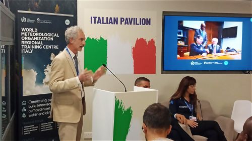 L'evento si è svolto sabato 9 dicembre presso il padiglione Italia, la presentazione è stata coordinata dal generale di brigata Luca Baione, capo dell'Ufficio generale per l'Aviazione militare e la meteorologia e rappresentante permanente d'Italia presso l'Organizzazione mondiale della meteorologia (Wmo). L'obiettivo era illustrare alla comunità internazionale l'offerta formativa, di addestramento e specializzazione che il "Sistema Italia" esprime nei settore della meteorologia e della climatologia: a tal fine, insieme al Servizio meteorologico dell'Aeronautica militare, erano presenti molte altre eccellenze a rappresentare l'Italia nel campo della formazione, specializzazione addestramento, come l'Istituto per la BioEconomia del Cnr, già certificato dal Wmo come Regional Training Centre che da circa 30 anni offre attività di formazione sia per la regione Europea che per Paesi della Regione Africa; l’Università de L'Aquila che ha presentato un corso di laurea magistrale concepito e curato insieme a "La Sapienza" di Roma; il Centro per il telesensing dell'ambiente e la modellistica previsionale di eventi severi (Cetemps) de l'Aquila; la Scuola superiore Sant'Anna di Pisa ed il consorzio Hydrology Satellite Application Facilities (H-Saf), il più numeroso di Eumetsat, guidato dall'Aeronautica militare con l'essenziale partecipazione della Protezione civile che esprime il Project Manager del consorzio.