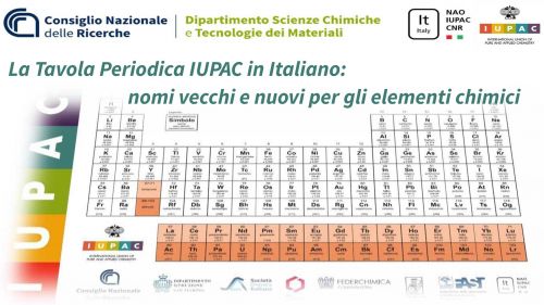 Il Dipartimento scienze chimiche e tecnologie dei materiali (Cnr-Dsctm) e la Commissione Italiana Cnr-Nao per IUPAC, rappresentanza ufficiale italiana presso il prestigioso organismo sovranazionale per la Chimica pura e applicata, hanno promosso la traduzione ufficiale in lingua italiana della Tavola Periodica, coordinando per la prima volta un gruppo di lavoro multidisciplinare composto da esperti del Cnr, della Società Chimica Italiana, della Società Chimica Svizzera, del Dipartimento Istruzione della Repubblica di San Marino, di Federchimica, dell’Accademia della Crusca e della Federazione delle Associazioni Scientifiche e Tecniche.