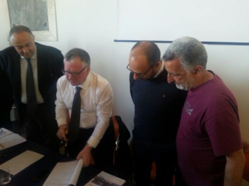Il momento della firma col presidente del Cnr Massimo Inguscio