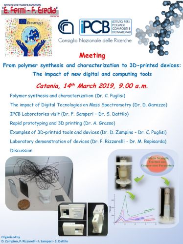 On March 14th 2019, a meeting on the subject 'From polymer synthesis and characterization to 3D-printed devices: The impact of new digital and computing tools' was held in Catania at the Institute for polymers, composites and biomaterials (Ipbc) of National research council (Cnr).