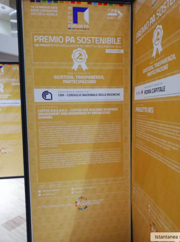 Il progetto, infatti, è stato premiato nell'ambito dell'iniziativa 'Premio PA sostenibile: per i 100 progetti per raggiungere gli obiettivi dell’Agenda 2030', sottogruppo 'Giustizia, trasparenza, Partecipazione' ed ha potuto esporre la propria presentazione nell'area galleria poster all’interno del Convention Center 'La Nuvola'.