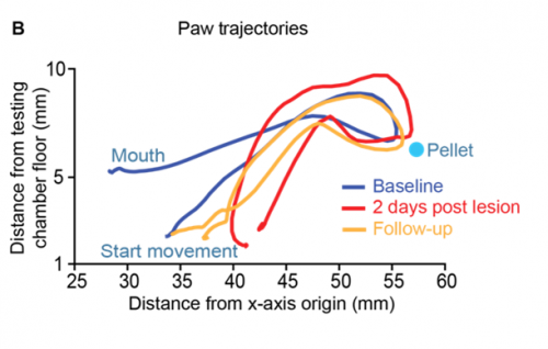 Grazie a questo connubio tra aumento della plasticità cerebrale ed esercizio fisico riabilitativo, gli autori hanno ottenuto un recupero funzionale delle capacità motorie, misurato non solo mediante test comportamentali ma anche utilizzando parametri di cinetica e cinematica del movimento. Attraverso questi test è stato possibile dimostrare che il movimento non solo migliora ma torna ad essere comparabile alle performance precedenti la lesione ischemica.