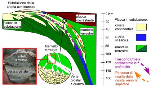 Grazie all’analisi isotopica dell’ossigeno del quarzo, i ricercatori sono riusciti a ricostruire il viaggio della crosta continentale che ha portato alla formazione di questo minerale, la cui presenza è “estranea” nel mantello terrestre. “In pratica, la crosta continentale è stata trascinata dalla superficie all’interno del mantello terrestre. A una profondità che stimiamo essere attorno ai 30 km e a una temperatura di circa 1000°C, la crosta continentale subdotta subisce processi di fusione e va a formare delle vene contenenti quarzo nel mantello. Pezzi di questo mantello sono infine strappati e trasportati nuovamente sulla superficie terrestre da magmi di origine profonda", racconta Luigi Dallai, associato di Geochimica e Vulcanologia dell’Università “La Sapienza”. "L’intero ciclo potrebbe essersi completato in un lasso di tempo che va da 10 a 2 milioni di anni fa”.