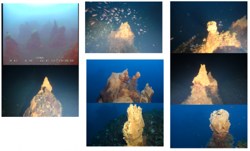 “Fino a quando nel 2015, durante una di queste campagne alle Isole Eolie, a bordo della nave Astrea”, spiega Teresa Romeo, primo ricercatore dell’Ispra, “il Rov (Remotely operated underwater vehicle un robot filoguidato dotato di una videocamera, una fotocamera e un braccetto meccanico) non ha individuato, in una zona del fondale a sud dell’isolotto di Basiluzzo poi chiamata Smoking Land, numerosi camini fortemente colonizzati da alghe e organismi bentonici, alcuni dei quali con evidenti fuoriuscite di fluidi idrotermali e bolle di gas”.