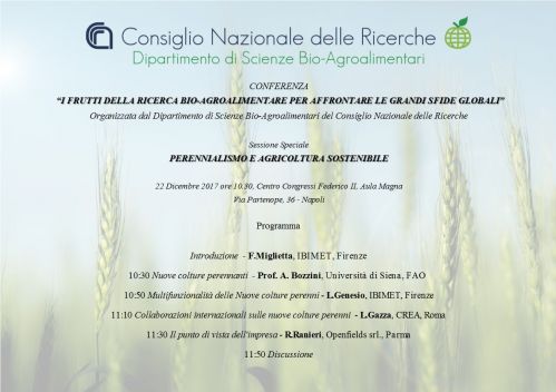 Il primo giorno la lettura plenaria riguarderà il programma Prima 'Partnership for Research and Innovation in the Mediterreanea Area', che costituisce il più grosso sforzo mai messo in campo dall’Europa per sviluppare in maniera sostenibile l’agricoltura del Mediterraneo, aiutando nel contempo a risolvere i principali conflitti sociali ed economici della regione. La relazione del coordinatore di Prima sarà seguita dagli interventi di due componenti del consiglio scientifico del dipartimento e sarà conclusa dalla prima sessione speciale su uno dei temi selezionati dalla giunta dei direttori degli istituti tra quelli nei quali la ricerca del dipartimento è particolarmente attiva e in grado di produrre risultati di alto livello scientifico e tecnologico.