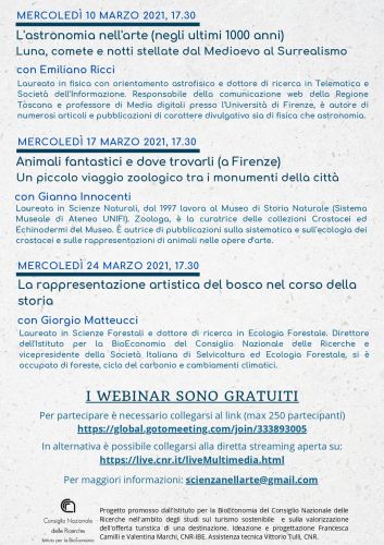 Riparte il prossimo marzo il ciclo dii webinar 'La scienza nell'arte'. Questa volta saranno l'astronomia, la zoologia e le scienze forestali a far apprezzare le evidenze naturalistico-scientifiche rappresentate in alcuni dipinti.