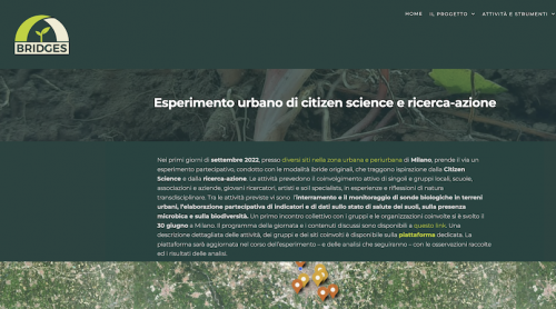 A supporto dell'esperimento di raccolta dati è stata realizzata una piattaforma dati che funge da collettore delle informazioni rilevanti legate all’esperimento: le azioni previste in questa fase, una descrizione dei diversi soggetti coinvolti nell'esperimento, un dettagliato calendario degli eventi che si terranno nei mesi di settembre e ottobre, a una mappa dei diversi luoghi nella zona urbana e periurbana di Milano dove avveranno gli interramenti e le analisi. Dalla piattaforma si accede anche alla soil mAPP di BRIDGES dove saranno condivisi i dati e le osservazioni di questo esteso esperimento partecipato.
