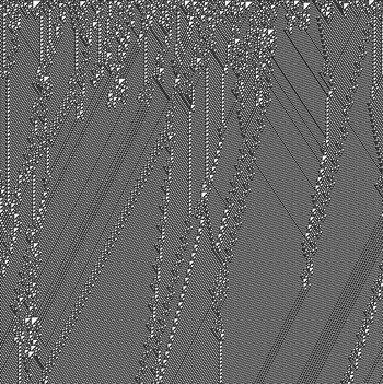 Quest'ultimo è illustrato in Figura 1, dove successive configurazioni della struttura 1-D di celle sono impilate, e le dimensioni orizzontale e verticale corrispondono, rispettivamente, allo spazio e al tempo.
