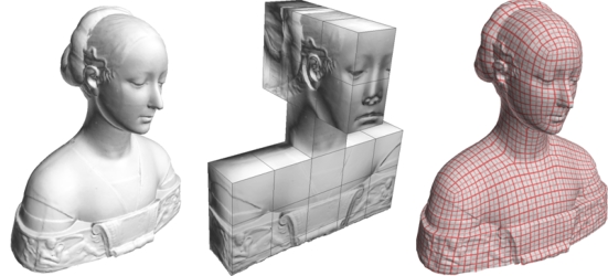 Un problema comune nell'elaborazione di modelli digitali 3D é rappresentato dalla necessità di creare parametrizzazioni di buona qualità su modelli 3D complessi; una parametrizzazione é necessaria, ad esempio, per il mapping dell'informazione pittorica (da foto digitali) sulla superfice del modello 3D. Il lavoro [C] propone una nuova metodica che elimina le discontinuità e riduce le distorsioni, estendendo il concetto di CubeMap a modelli di forma complessa che richiedono uno spazio di mappatura più strutturato di un semplice cuboide (denominato PolyCube maps).