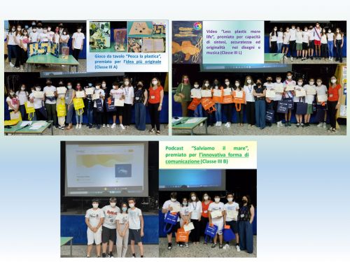 - Video “Less plastic more life”, realizzato da alcuni alunni della III L, per la completezza di informazioni, capacità di sintesi, accuratezza ed originalità di alcune immagini disegnate ad hoc e per la musica suonata da un alunno;