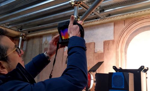 Grazie al cantiere già montato nella prima fase di lavoro è stato possibile svolgere una nuova campagna diagnostica a cura del Cnr-Ispc, più approfondita ed esaustiva di quella svolta negli anni Ottanta del Novecento, condotta con le più aggiornate tecniche e le migliori competenze disponibili sul panorama internazionale grazie alla collaborazione tra SABAP, Cnr-Ispc, Università di Firenze e OPD a cui spetta la progettazione e realizzazione dell’intervento conservativo vero e proprio. Le tecniche utilizzate, completamente non- invasive, hanno permesso di conoscere approfonditamente i materiali utilizzati, le tecniche esecutive, le fenomenologie di alterazione o degrado e le cause che le hanno prodotte, informazioni indispensabili per una corretta pianificazione dell’intervento. Alla campagna diagnostica si è affiancato un modello per il monitoraggio di apparati decorativi complessi. Il rilievo dello stato di conservazione si è concentrato particolarmente sull’analisi dei distacchi di intonaco, che rappresentava il fenomeno più preoccupante e su cui intervenire con più urgenza. Le porzioni di intonaco classificate nel livello più grave sono state messe in sicurezza dai tecnici dell’Opificio delle Pietre Dure. È stato poi avviato un progetto, sempre in collaborazione con Cnr-Ispc, Università di Firenze, OPD e SABAP, per valutare le caratteristiche della malta impiegata nel precedente intervento, con l’obiettivo di stabilizzare i distacchi di intonaco.