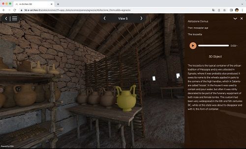 Commissionato ad ALES spa dal MiC, il progetto e-Archeo offre una modalità di lettura e di valorizzazione digitale di siti archeologici distribuiti sul territorio nazionale, frutto della presenza di popolazioni e culture diverse: Sirmione e Desenzano sul lago di Garda, Marzabotto, Cerveteri, Alba Fucens, Velia, Egnazia, Sibari, Nora. Ricostruzioni virtuali e applicazioni multimediali sono state realizzate, all’insegna dei principi della scienza aperta, con varie applicazioni per diverse tipologie di pubblico, con una impostazione sia scientifica, che narrativa ed emozionale. L’obiettivo del partenariato, composto da istituzioni governative, il Cnr- IspcC, 10 università, 12 industrie creative, esperti di accessibilità è il rafforzamento della capacità di operare congiuntamente nella valorizzazione del patrimonio culturale italiano. Comitato scientifico di coordinamento: Carolina Botti (ALES SpA), Francesca Ghedini (Università di Padova), Eva Pietroni (Cnr - Ispc), Sofia Menconero (Sapienza Università di Roma)