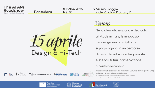 L'Istituto di scienze del patrimonio culturale del Cnr e la Rome University of Fine Arts (RUFA), in collaborazione con Università Sapienza e le Accademie dell'Alta Formazione Artistica, Musicale e coreutica (AFAM) lanciano un evento itinerante sul Patrimonio Culturale Digitale, con mostre, lectio magistralis e tavole rotonde con ospiti dal mondo artistico, museale, progettuale. "The AFAM Roadshow – Ricerca. Creatività. Innovazione" sarà in tour in Italia, toccando 7 città, a partire dal 9 aprile fino al 3 ottobre.