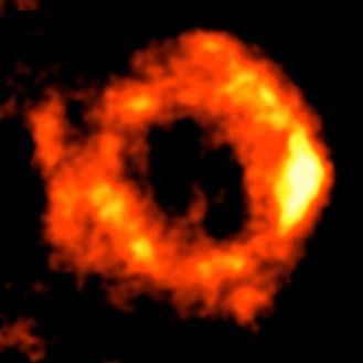 Infine, nell'ultima sessione di aprile 2025, MISTRAL ha osservato, attraverso due scansioni incrociate di circa mezz'ora ciascuna, il resto di supernova Cassiopea A (Cas-A) una delle più intense radio sorgenti del cielo avente una dimensione angolare di circa 5 minuti d'arco (circa un sesto del diametro apparente della luna piena). Il guscio di gas in espansione è visibile nella sua interezza e, grazie alla risoluzione angolare di SRT a queste lunghezze d'onda, si possono apprezzare i dettagli e le variazioni di luminosità della struttura filamentare.