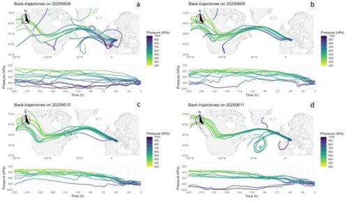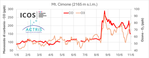 One of the clearest indicators of this phenomenon was recorded on the morning of June 8, 2025, at the CNR Climate Observatory on Monte Cimone. On that day, a sharp increase was observed in several atmospheric pollutants associated with biomass combustion—particularly airborne particulate matter, carbon monoxide (CO), and ozone (O?). Atmospheric transport models, together with direct observation of dense haze, confirmed the Canadian origin of these air masses at high altitude.