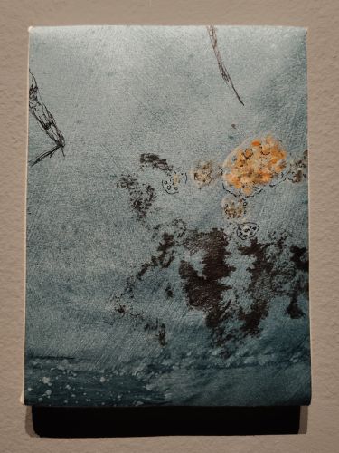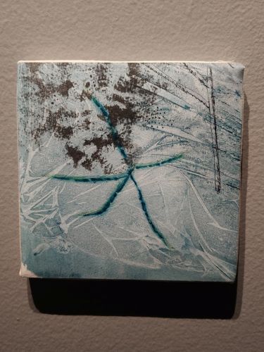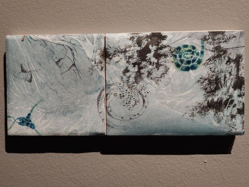 “Lo studio di questi organismi richiede talvolta l'uso di microscopi e coloranti specifici per evidenziare strutture impercettibili ma significative”, ha sottolineato Manfio. “Il colore di questi coloranti, come il blu di lattofenolo e la fucsina basica, è stato utilizzato nell'opera per stabilire una visione contemporanea tra macroscopico e microscopico. Giocando con dimensioni e ingrandimenti, con le diverse caratteristiche dell'acqua, rappresenta soggetti umili ma onnipresenti che conducono la loro esistenza invisibili all'occhio umano ma significativi per la sua sopravvivenza sulla Terra”.