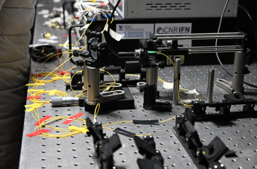 Nell’ambito del progetto, fondamentale è stato lo sviluppo da parte dell’Università di Pavia delle sorgenti di luce quantistica basate su chip con guide a spirale, collegate tramite fibre ottiche con il processore programmabile di Qolossus.