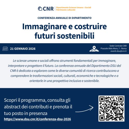 “Immaginare e costruire futuri sostenibili” è il titolo della Conferenza annuale del Dipartimento scienze umane e sociali, patrimonio culturale del Consiglio nazionale delle ricerche (Cnr-Dsu), che si è svolta il 21 gennaio a Roma nella Sala Convegni della sede centrale del Cnr. Focus della conferenza: esplorare come le diverse comunità di ricerca contribuiscono a comprendere le trasformazioni sociali, culturali, economiche e tecnologiche e a orientarle in una prospettiva inclusiva e sostenibile.