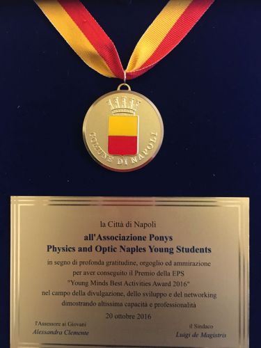 Il 20 Ottobre 2016 l’associazione Ponys (Physics & Optics Naples Young Students) è stata insignita di una targa di riconoscimento dall’ Assessorato ai Giovani, Creatività, Innovazione del Comune di Napoli, per il premio della European Physical Society (EPS) 'Young Minds Best Activities Award 2016', da essi vinto a Luglio. L’EPS ha valutato le attività di 36 sezioni studentesche europee per individuare quella che si è distinta nell’anno accademico 2015-2016, ed ha riconosciuto agli studenti napoletani il primo posto 'per le attività svolte nel campo della divulgazione, dello sviluppo professionale e del networking'.